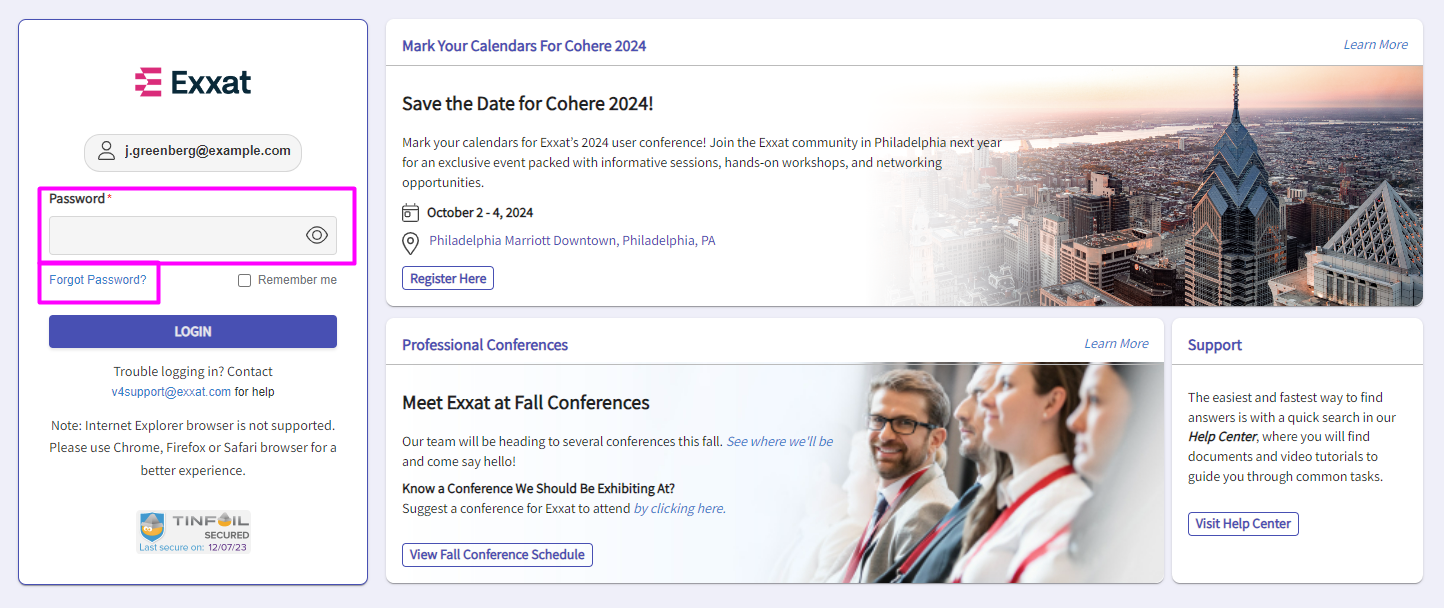 2. The next screen will prompt you to enter your password. If you've forgotten your Exxat Prism password, please click on the "Forgot Password" link.