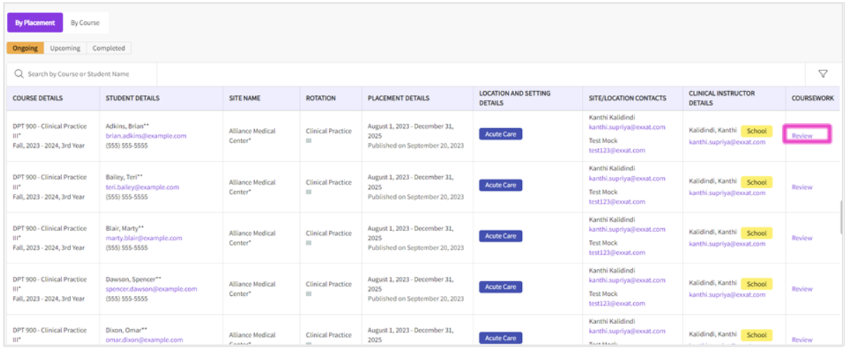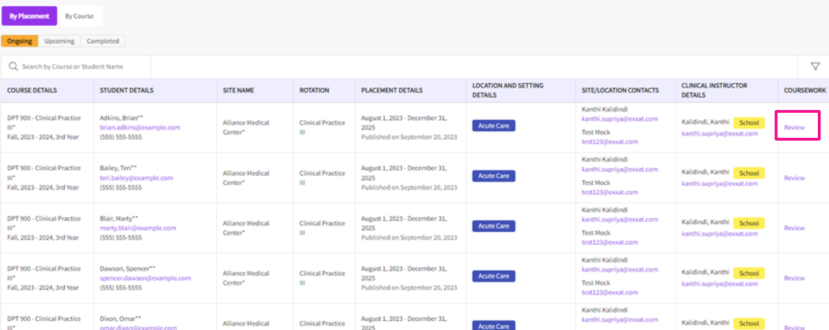 By Student placements are also divided into three sections: Upcoming, Ongoing, and Completed, facilitating quick access to the most pertinent information.