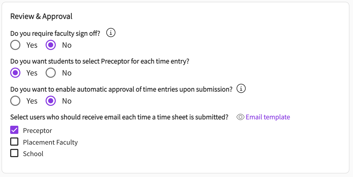 Select Yes to require students to select a Preceptor for each time entry.