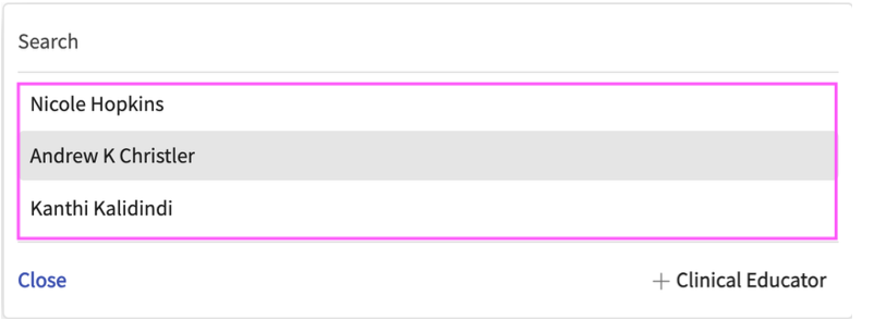 13. If your patient log allows you to link an experiential supervisor, you will need to click on the experiential supervisor dropdown to assign this patient log an experiential supervisor.