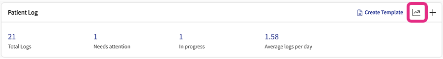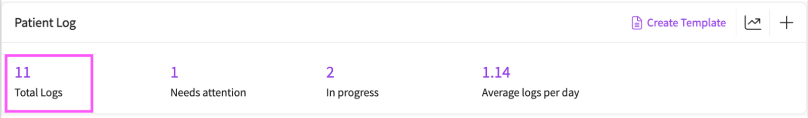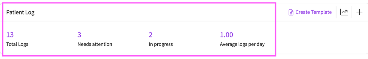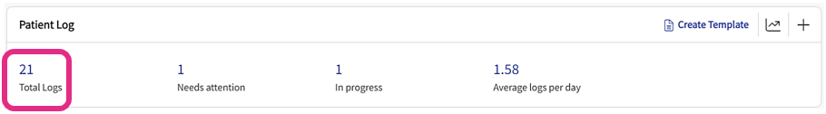 7. Scroll down the page to the Patient Logs section. The system will show you a count of your total logs, as well as any logs that need your attention, are in progress, and the average number of logs entered per day.