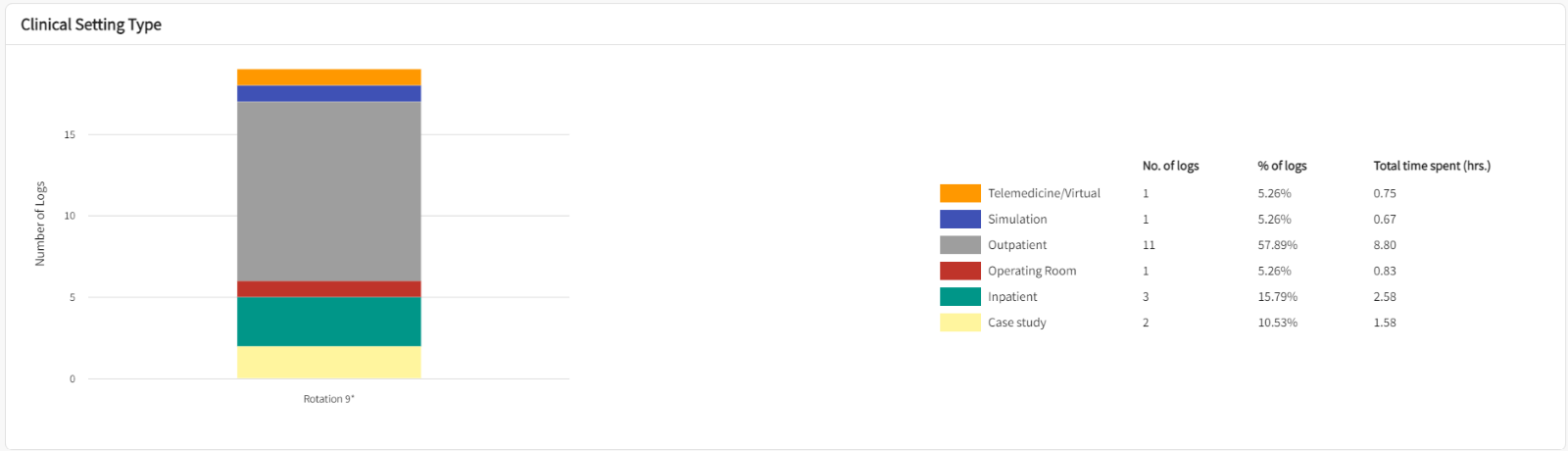 9. You can aggregate the data by multiple criteria at the same time. For example, if you are placed in different courses in the same setting, you may want to aggregate your patient log data by setting and then by course. This way you can view the total aggregate patient log data for each setting and break this down further by course.