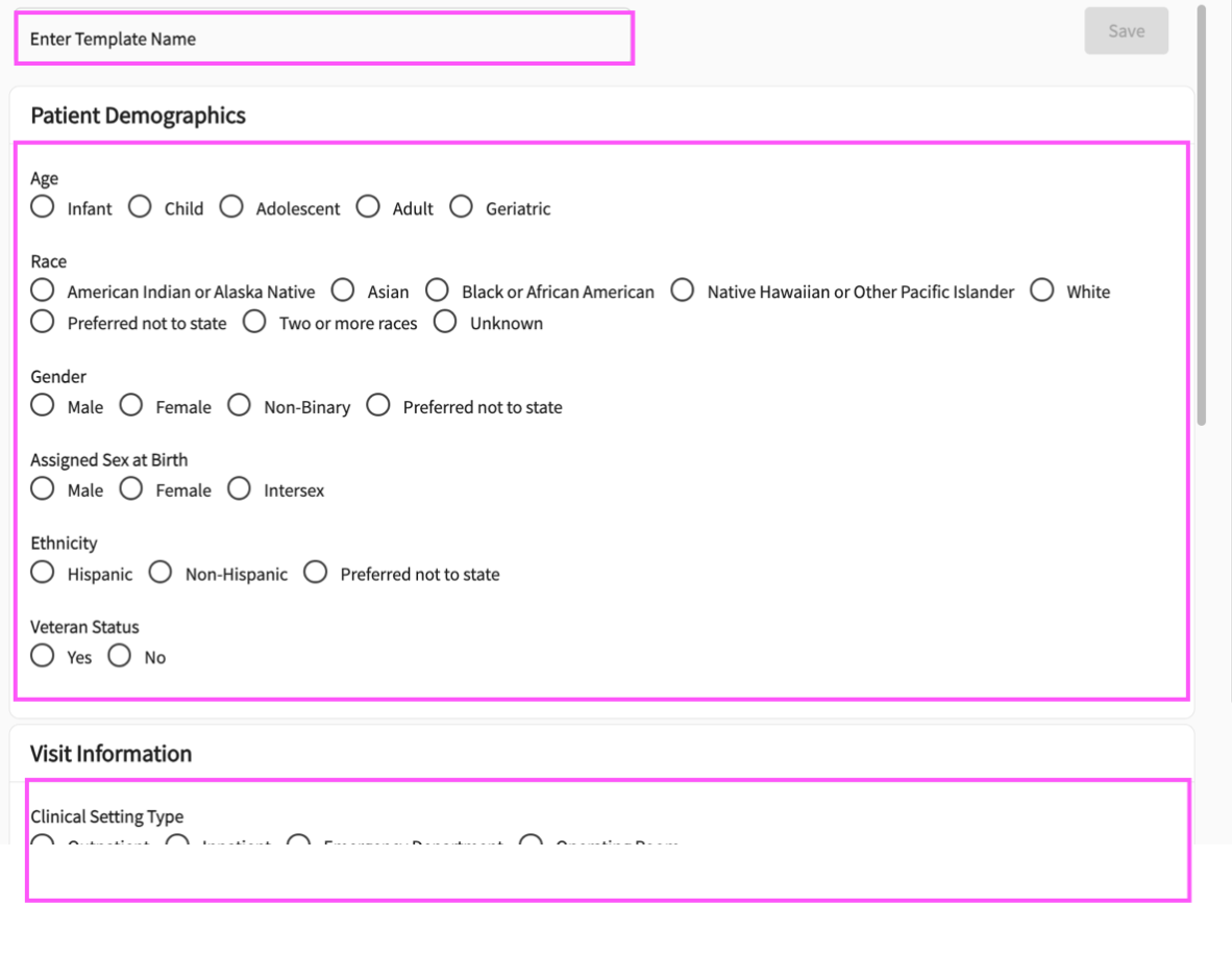 c. You will then need to provide the template with a name and make selections on the template indicating the common information.
