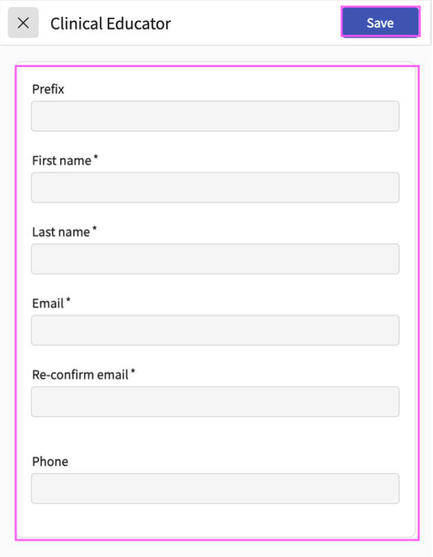 16. You will then need to fill out the experiential supervisors information and click on the save button. The new experiential supervisor will then be assigned to this patient log and placement.