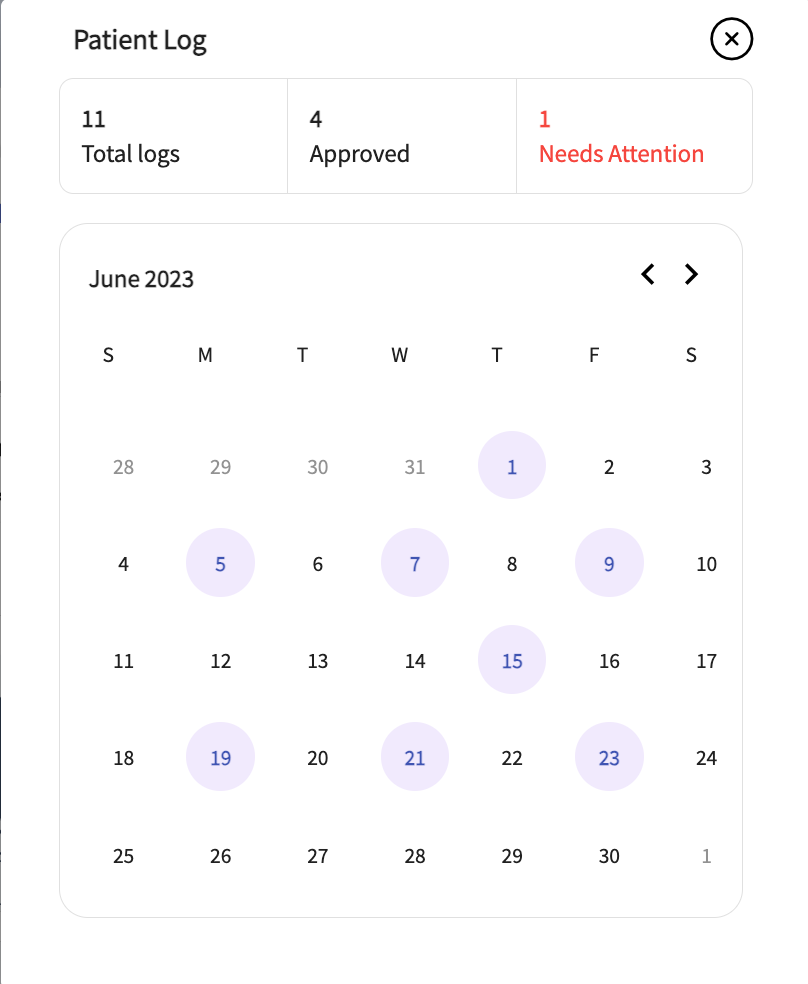 4. Click on the calendar icon to view the dates for which patient logs have been submitted.