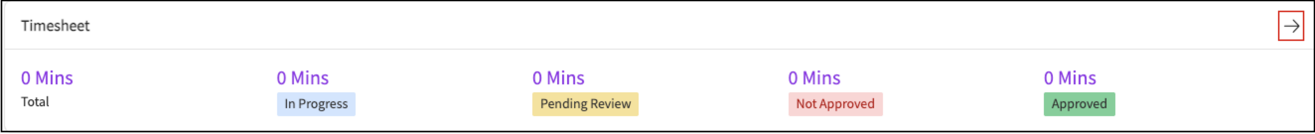 Scroll to the Timesheets section to view total submitted, approved, and not approved hours.