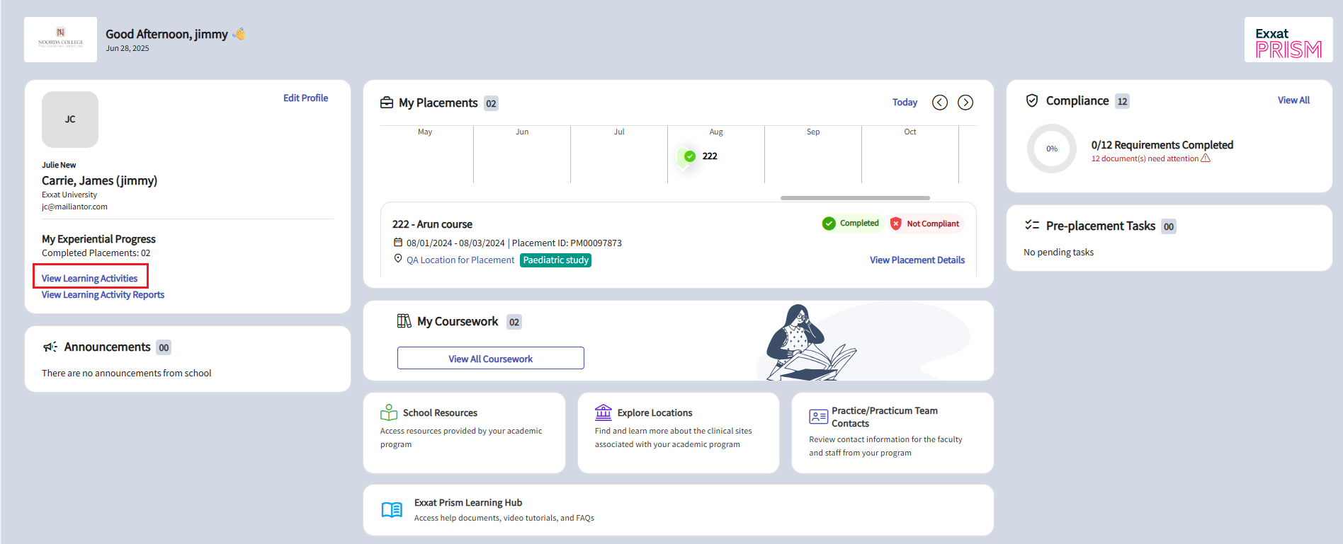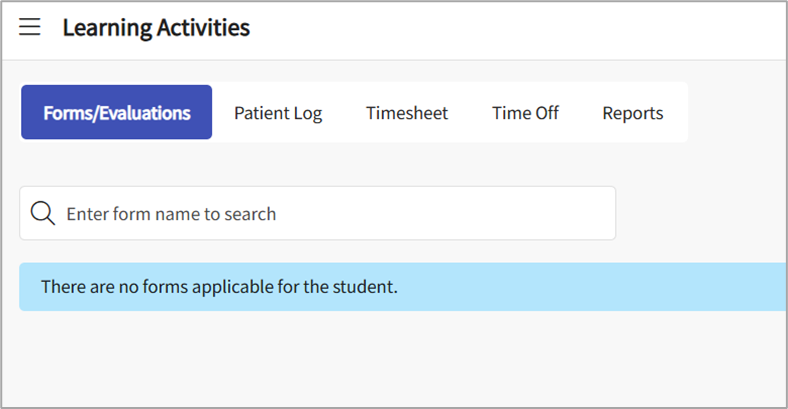 If you do not see any Learning Activities, it means either your placement has not been published, or your school has not yet enabled the Learning Activities. In this case, please reach out to your school for assistance.