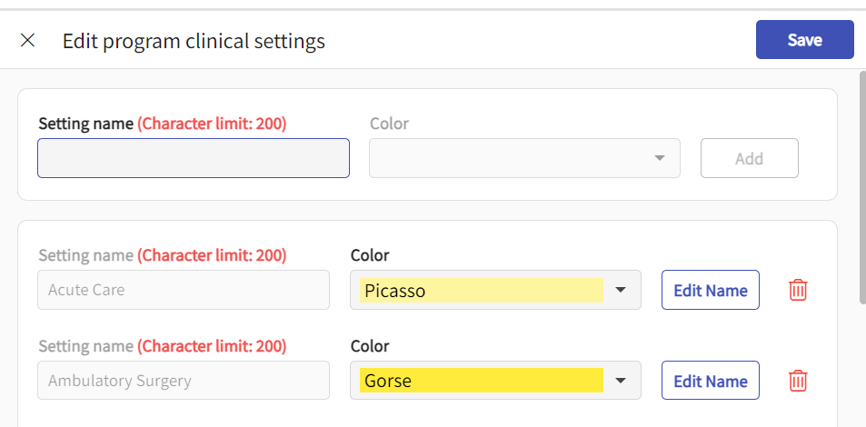Add/Edit Grading and Clinical Setting