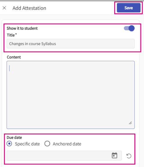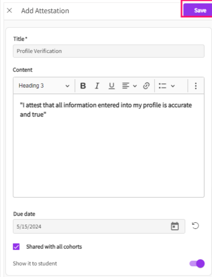 Please note: Once a student attests the attestations, you will not be able to edit the title, content, and cohort for the student.