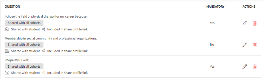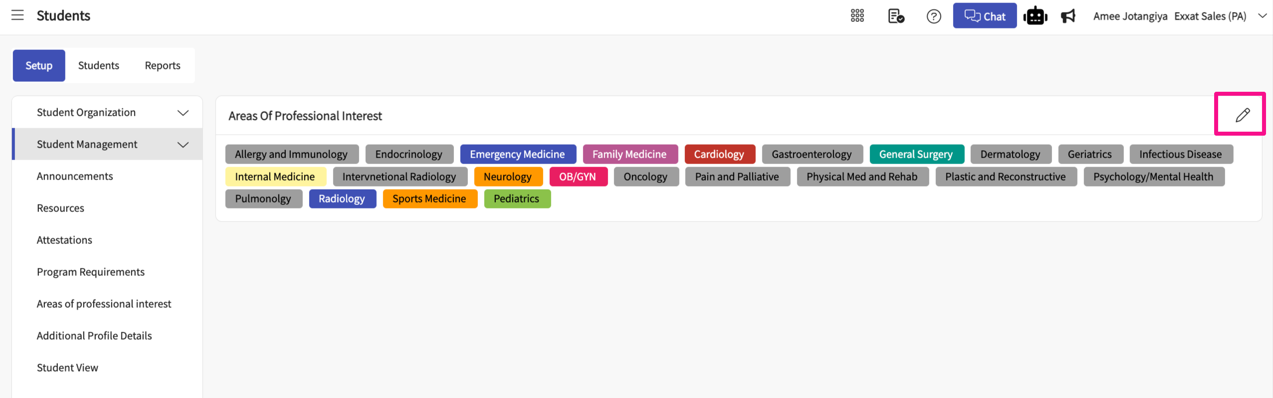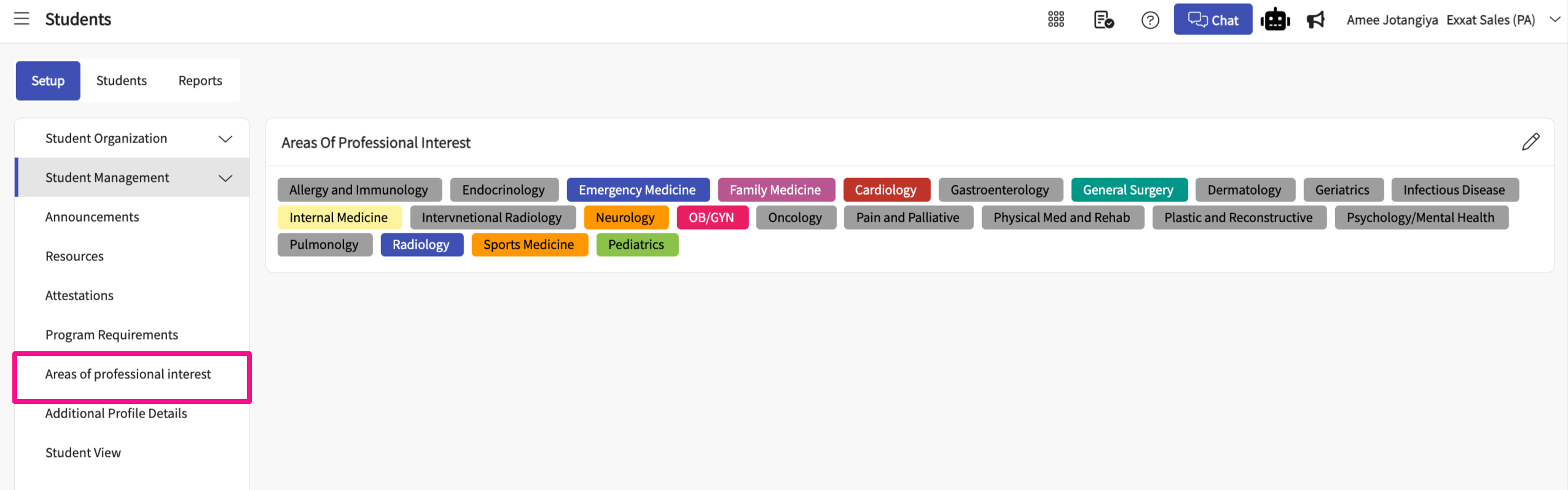 You can set up Student Areas of Professional Interest, providing your students with the opportunity to select their professional interests throughout their program. They can also share their Professional Interest with their CIs through their profile link