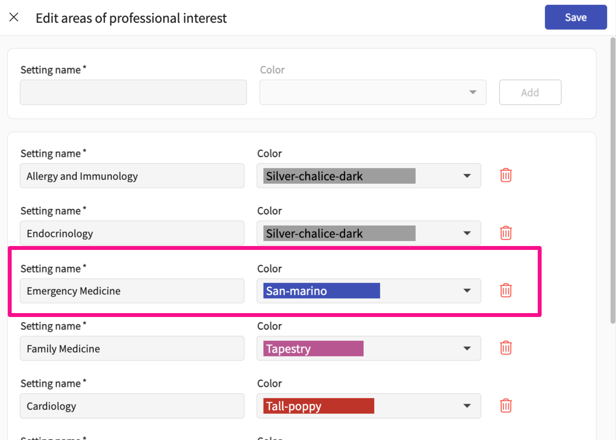 These settings are meant for your students to select when specifying their Areas of Professional Interest, which can be shared with their CI's via their profile link - You would also have the flexibility to delete any selected settings at your convenience