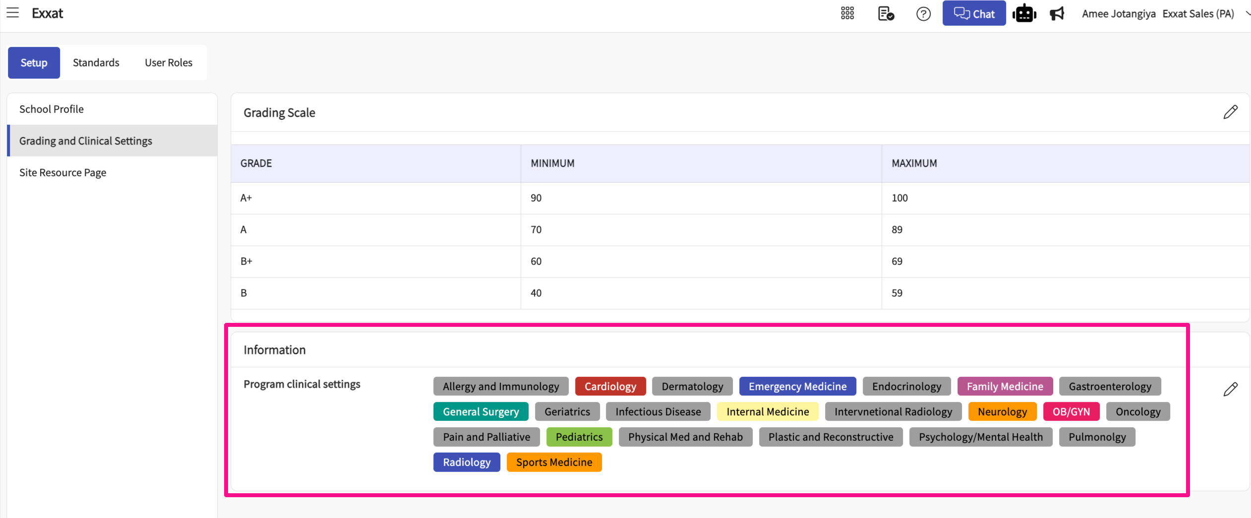 However, please be aware that the system restricts you from deleting any settings to those ones already included in your Program Details. This is because your program settings may be tied to other data i.e. Placements in Exxat Prism system