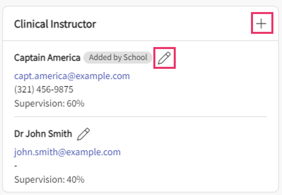 - You will see a different label depending on your program (Clinical Instructor, Preceptor, Fieldwork Educator, Supervisor).
