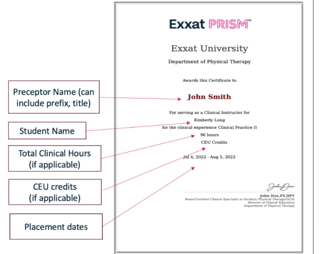 The Exxat Prism platform allows you to add CEU credits at rotation level, and the system calculates the CEU credit for each clinical instructor based on the supervision percentage added by the student.