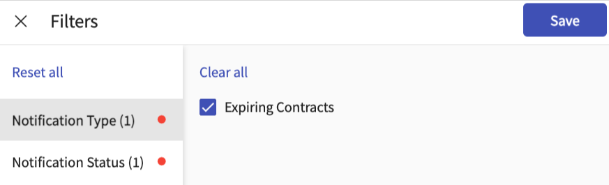 Notification Type – select Expiring Contracts to view all the contracts that will expire.