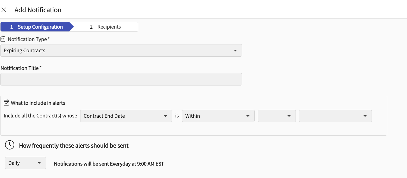 Note: Notification recipients for expiring contracts will receive alerts for contracts with active sites only.