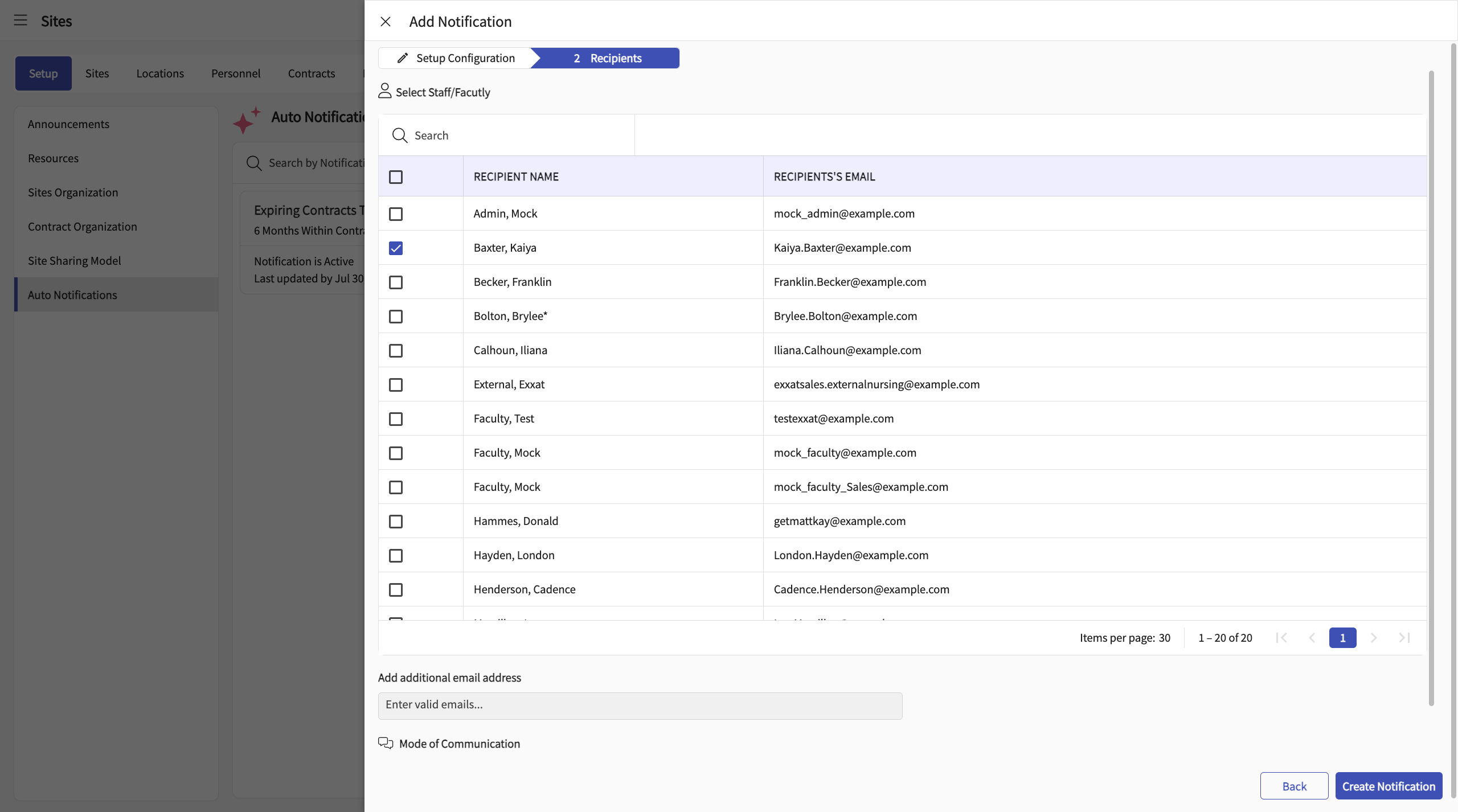 You can set email alerts for faculty and staff about expiring contracts at the program or institutional level. You can create, edit, pause, and delete multiple notifications for each category. This helps you schedule notifications as a reminder for your expiring contracts.
