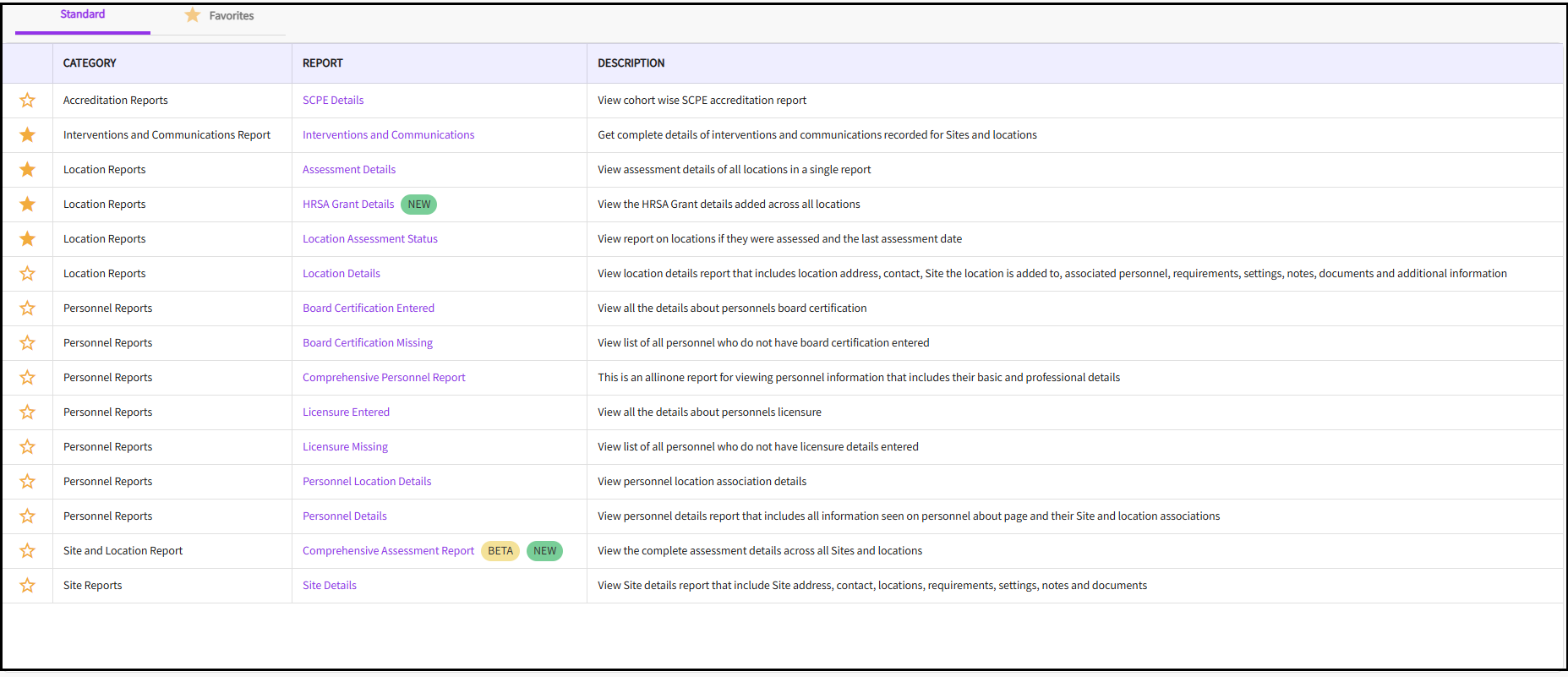 View Site, Location, and Personnel Reports