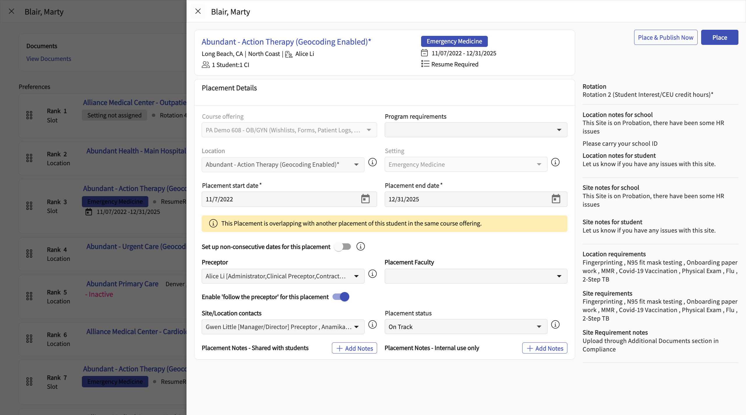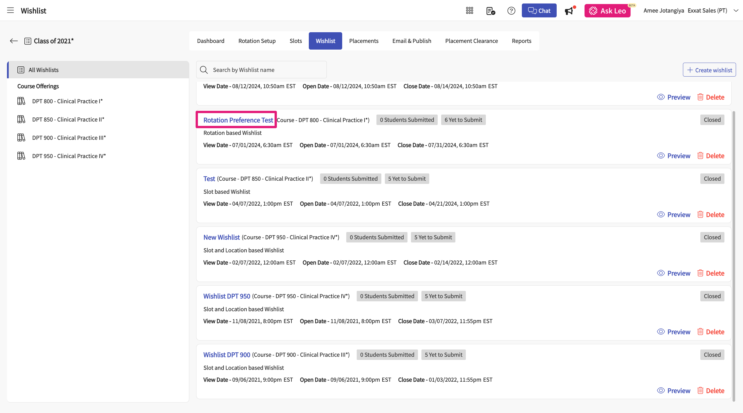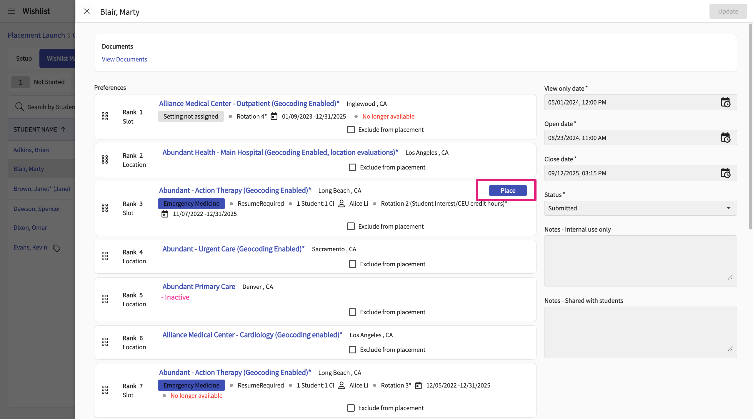 Managing Wishlists for Student Rotations