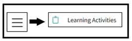 or - In the top left corner of the dashboard, click the hamburger menu and select Learning Activities.