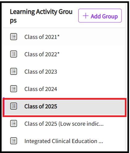 Learning Activity Groups allow you to analyze learning activities across rotations all at once.