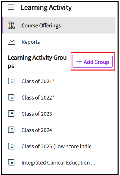 - To learn how to Add Learning Activity Group, see Add Learning Activity Group