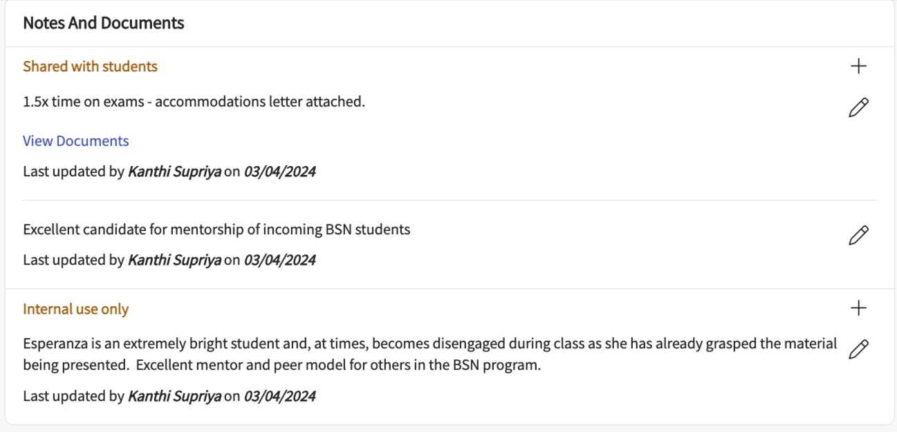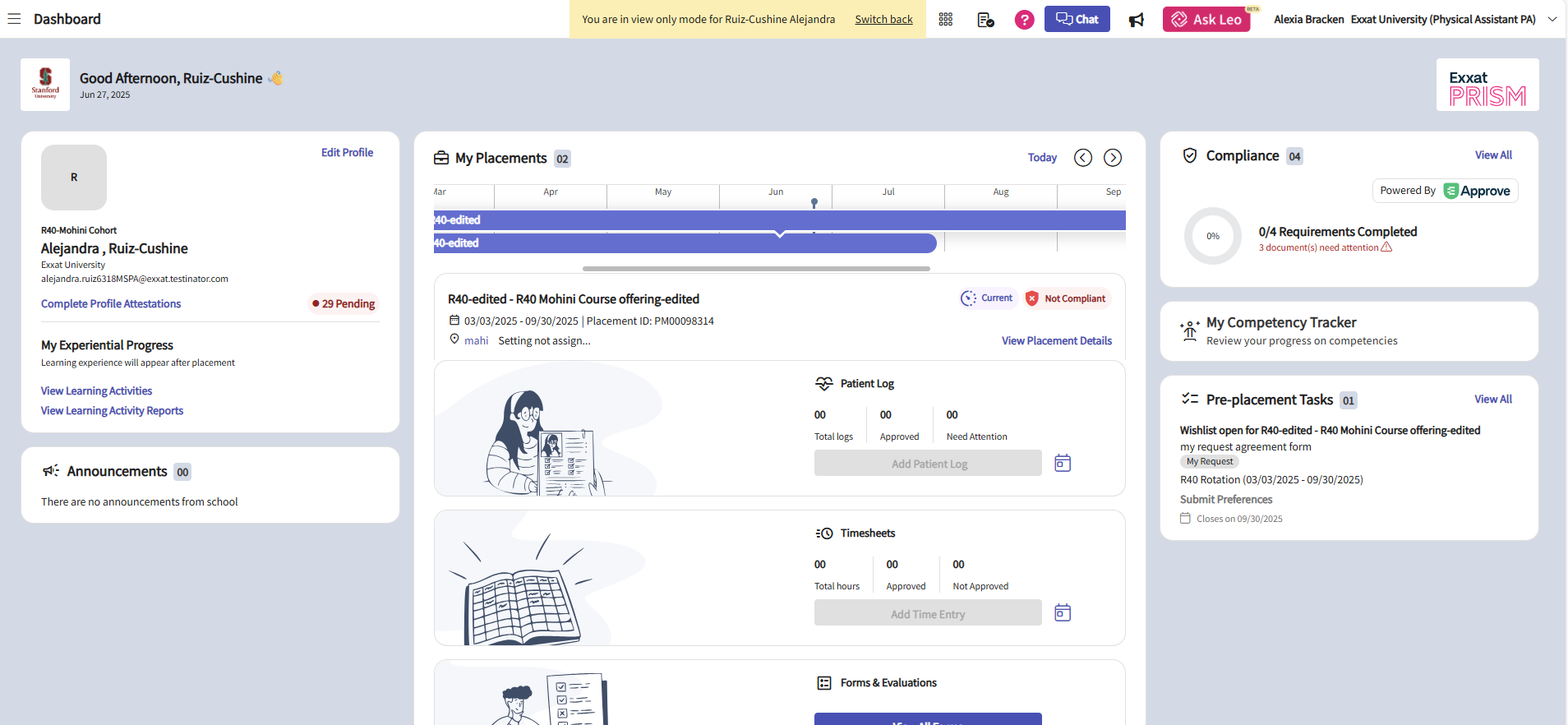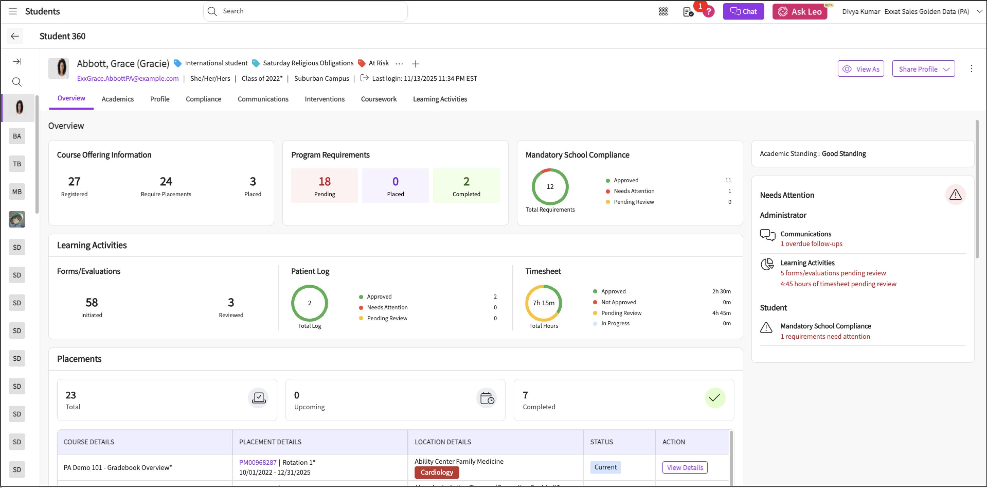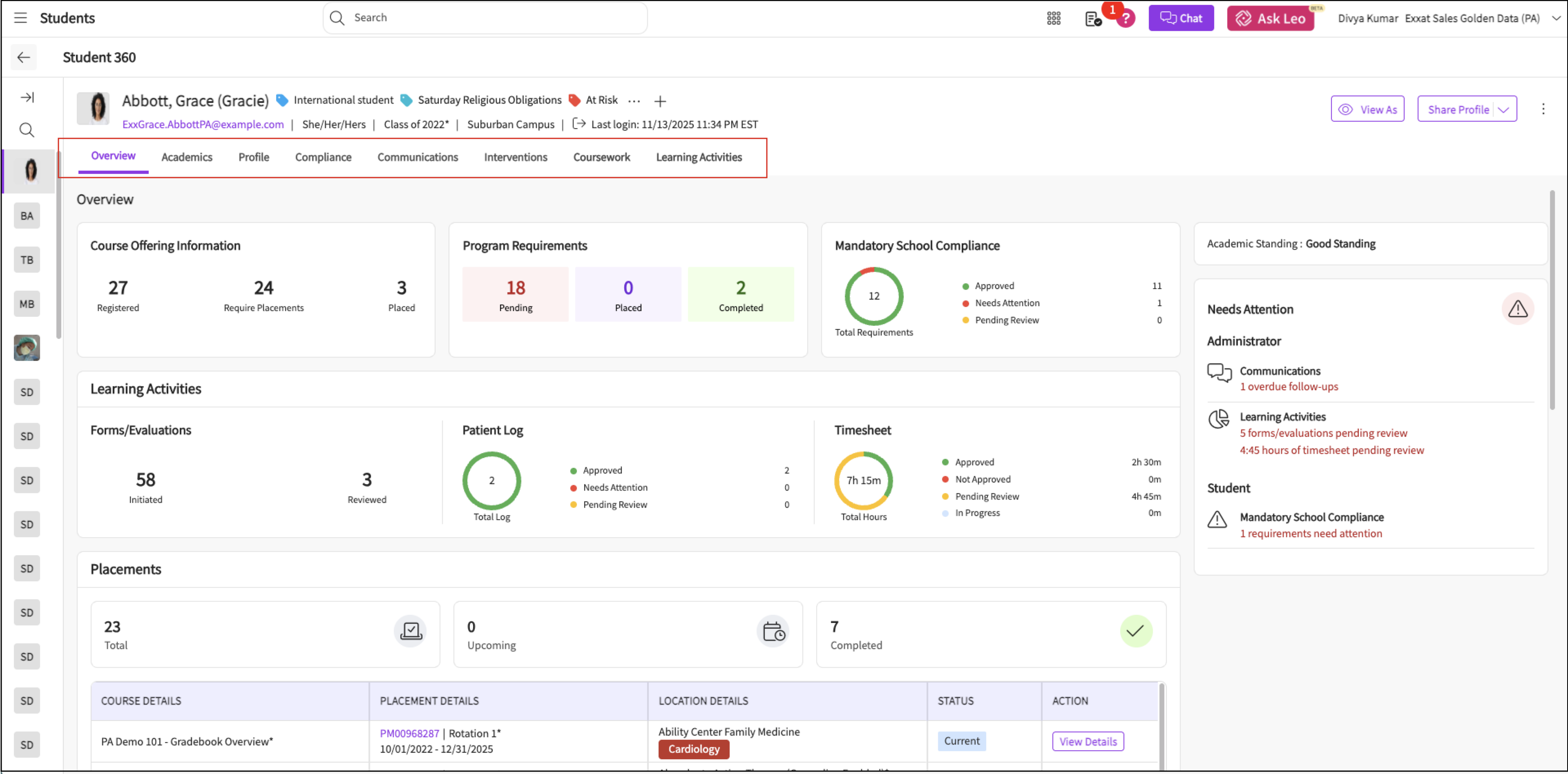 Overview of Student Page