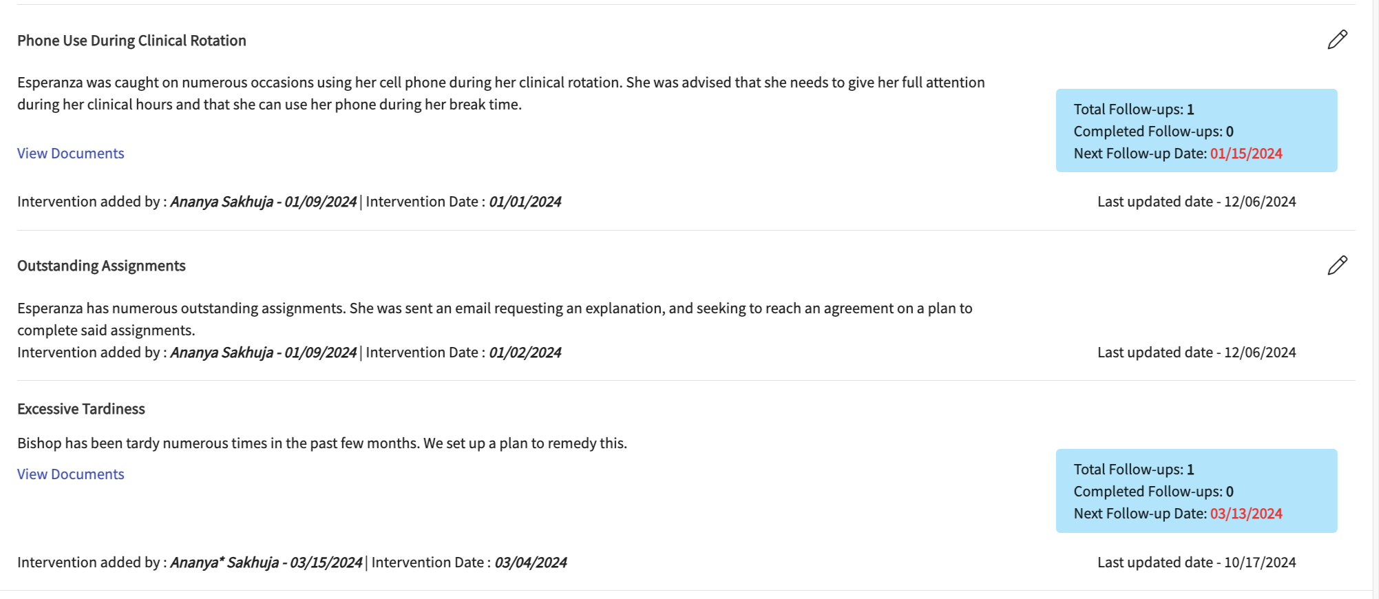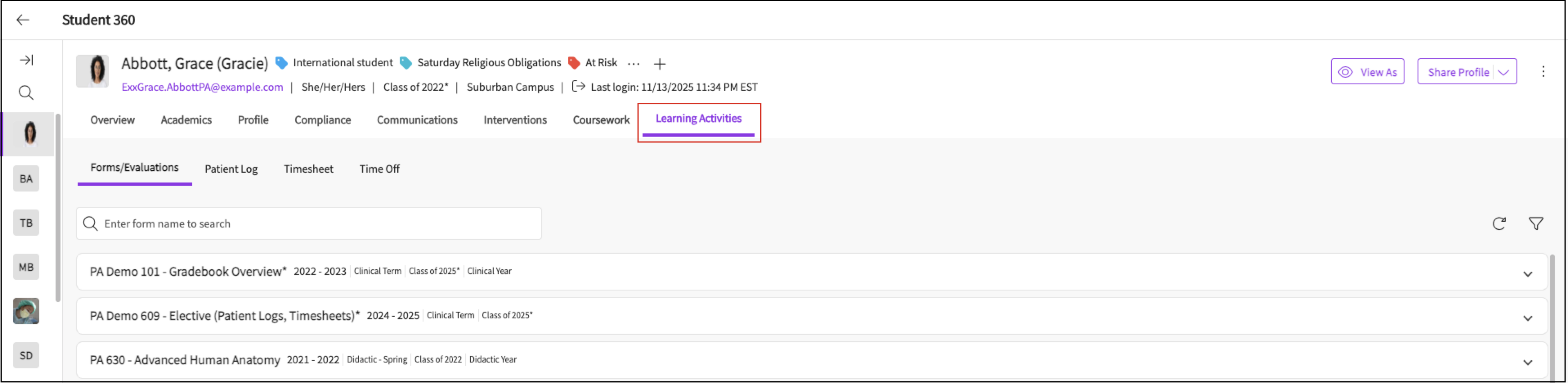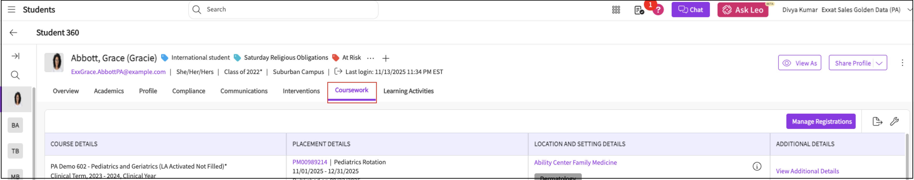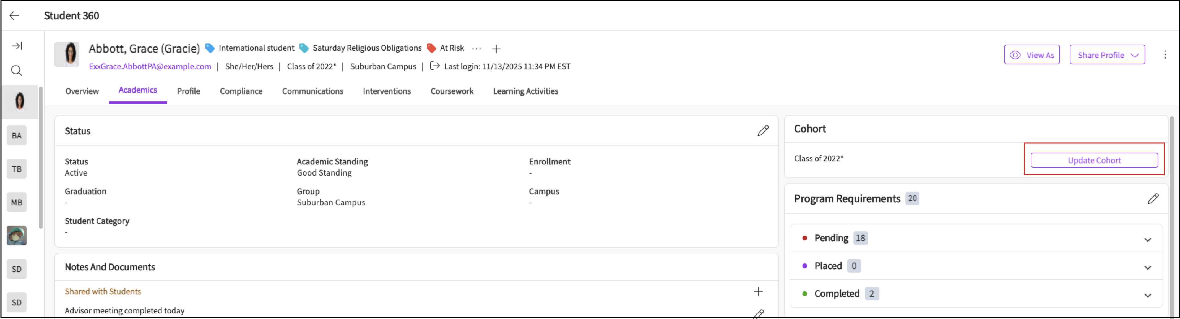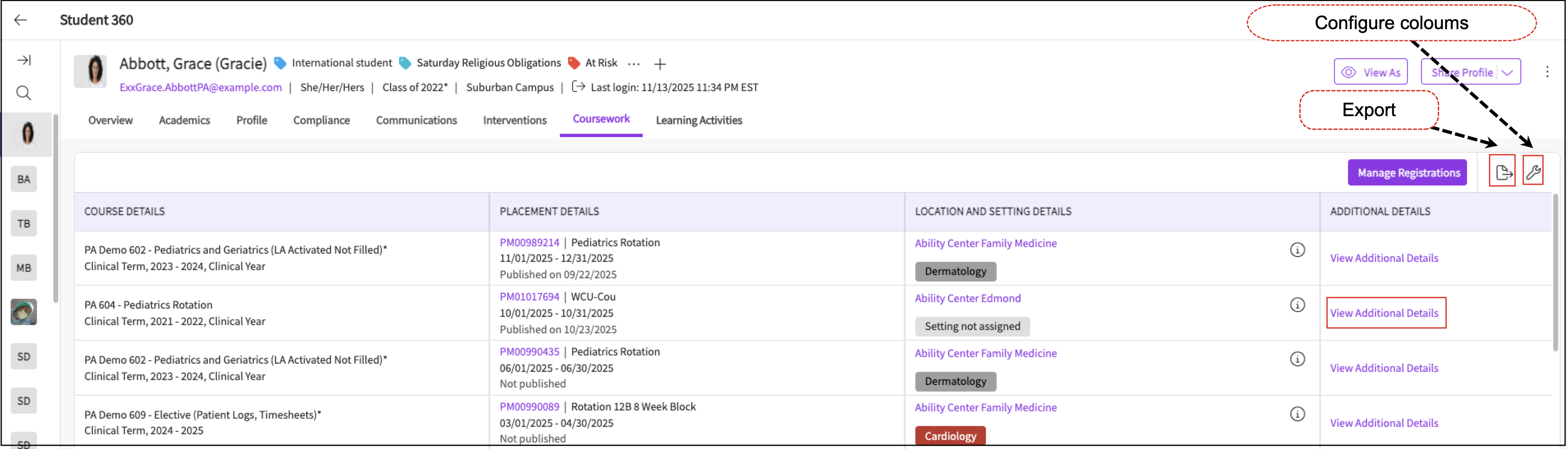 Overview of Student Page