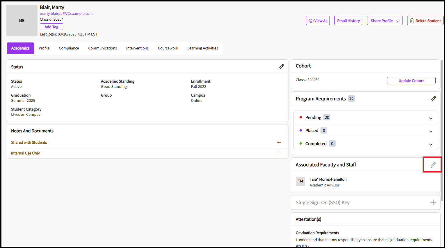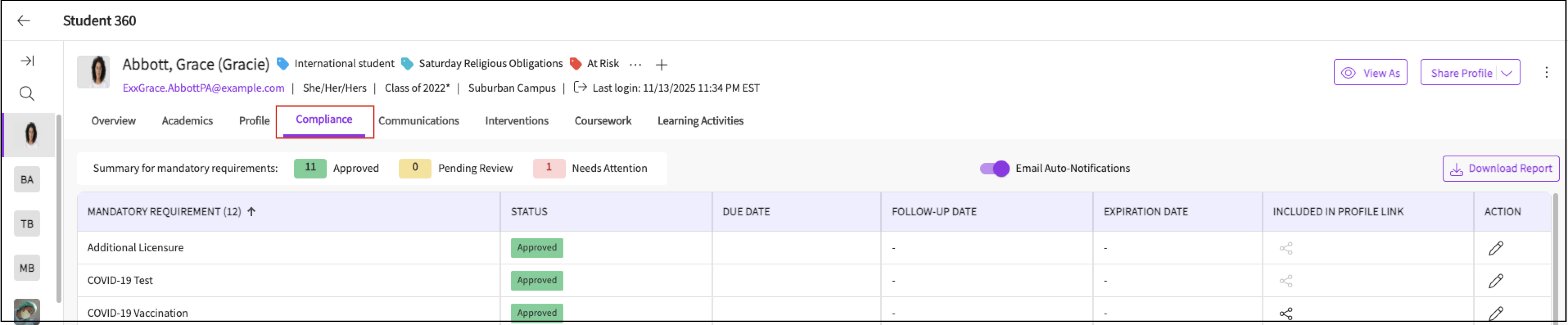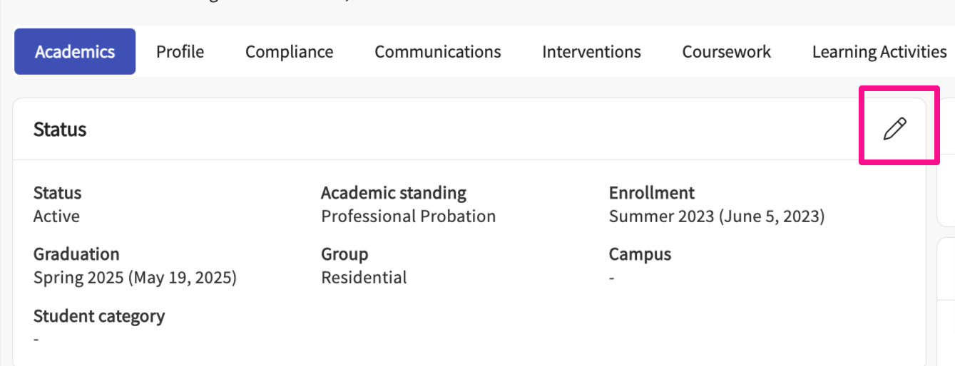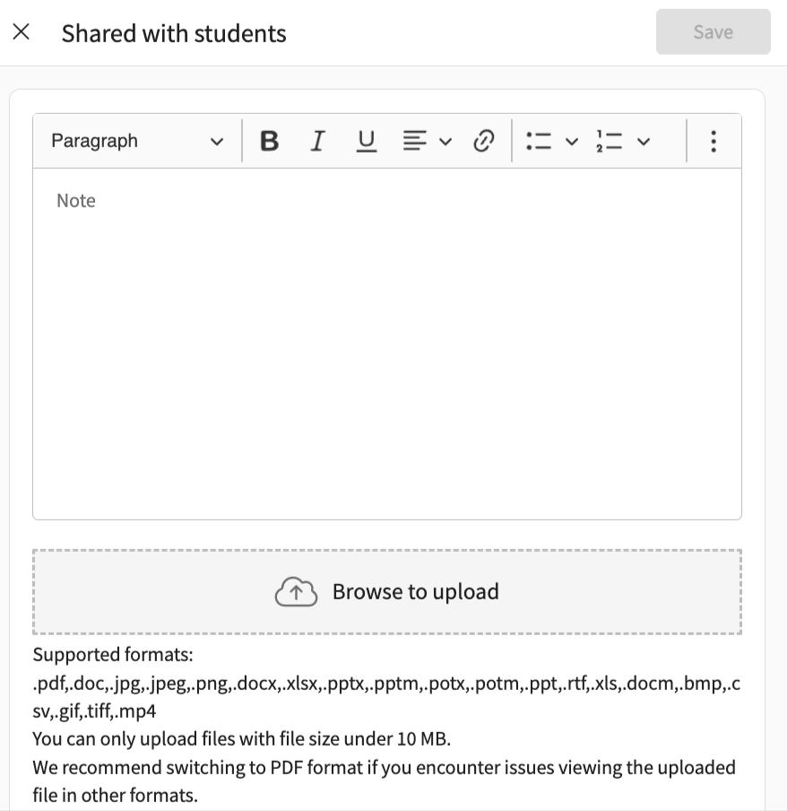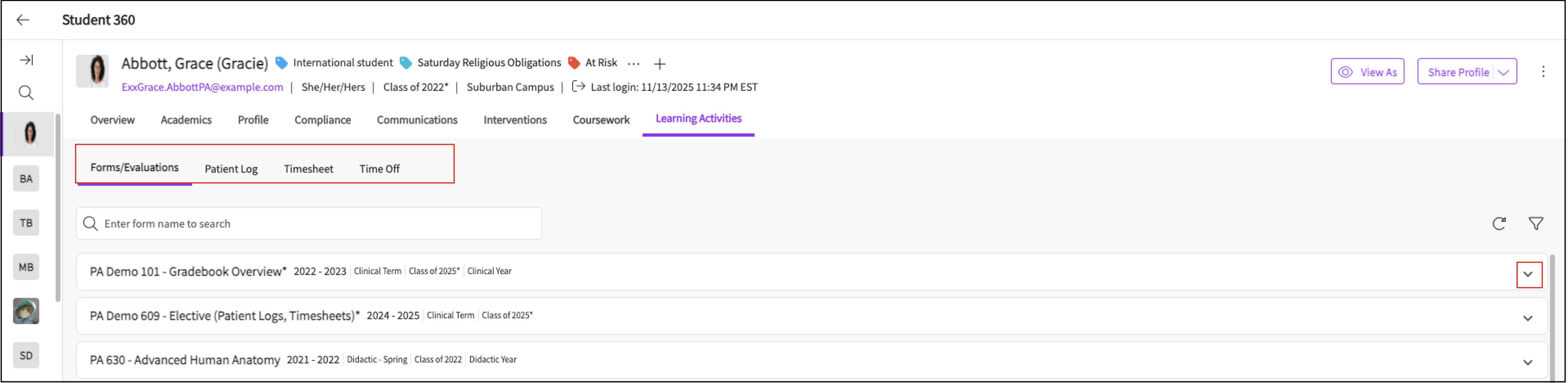 Overview of Student Page