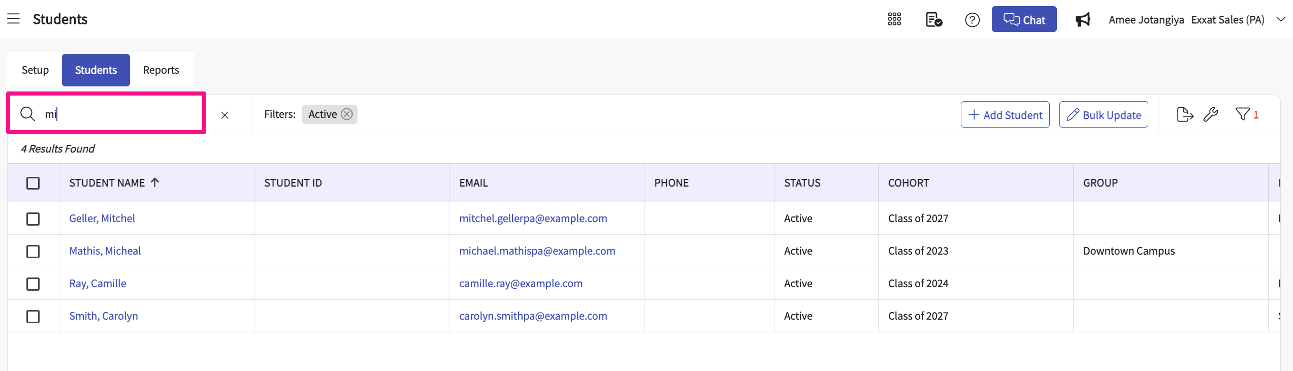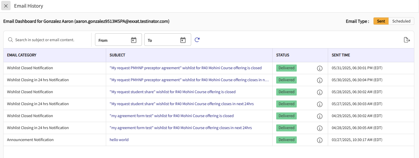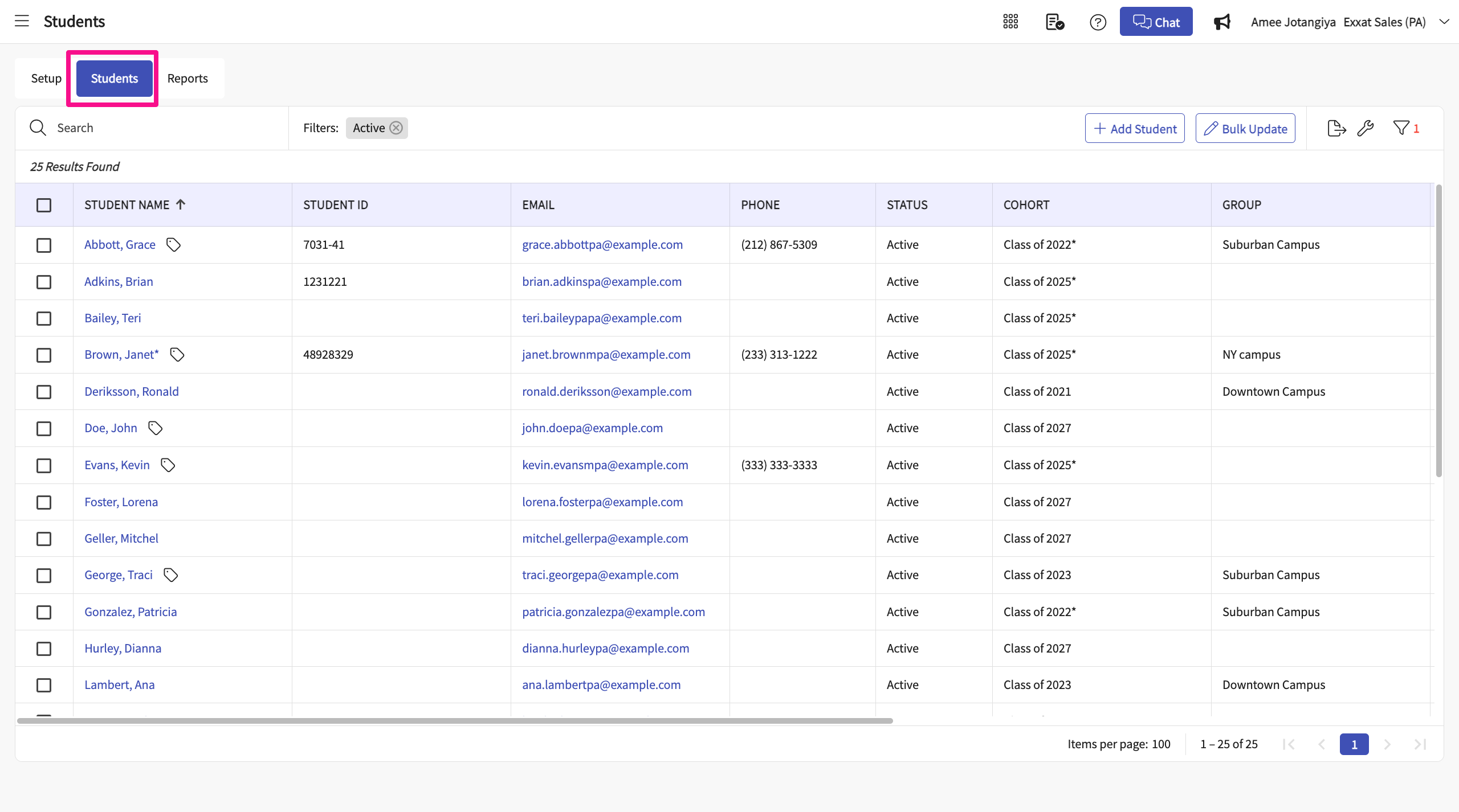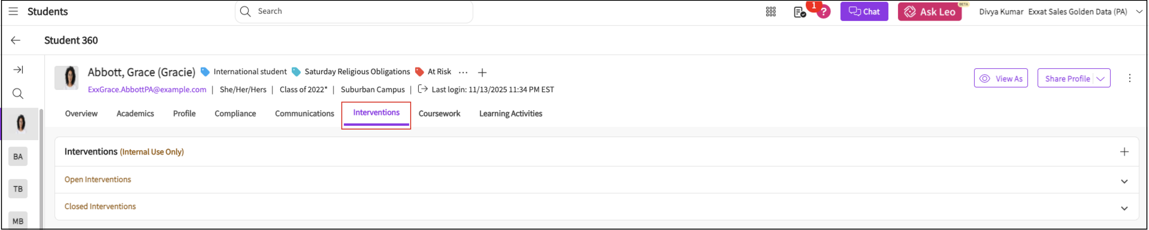 Overview of Student Page