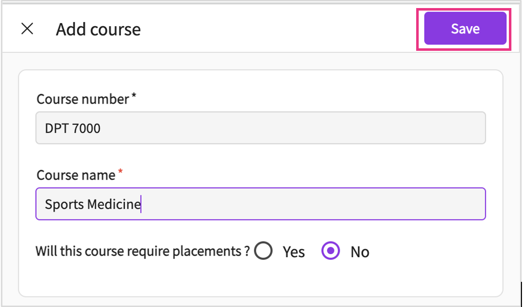 - To Add courses, click on "Add Courses" and provide essential details such as Course Number, Course Name, and specify whether placement is required or not.