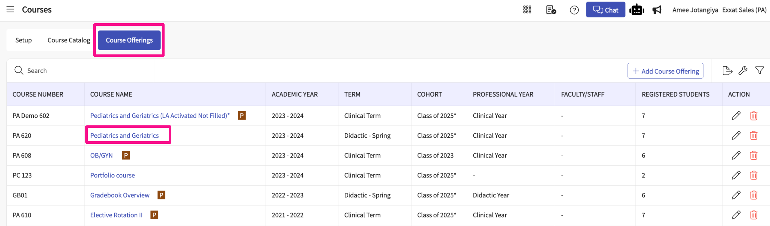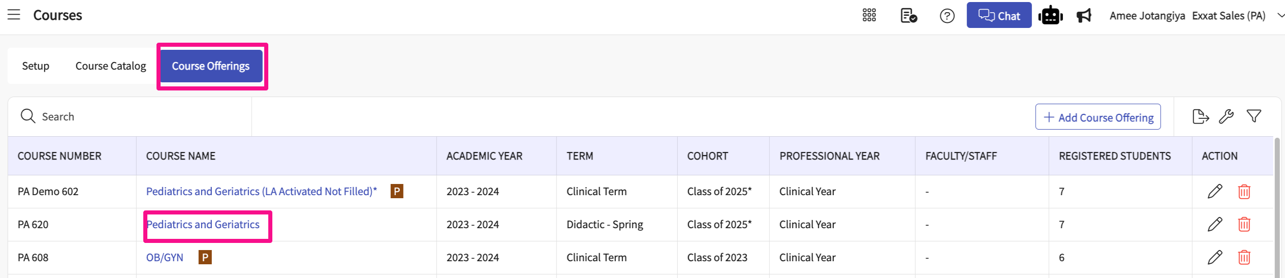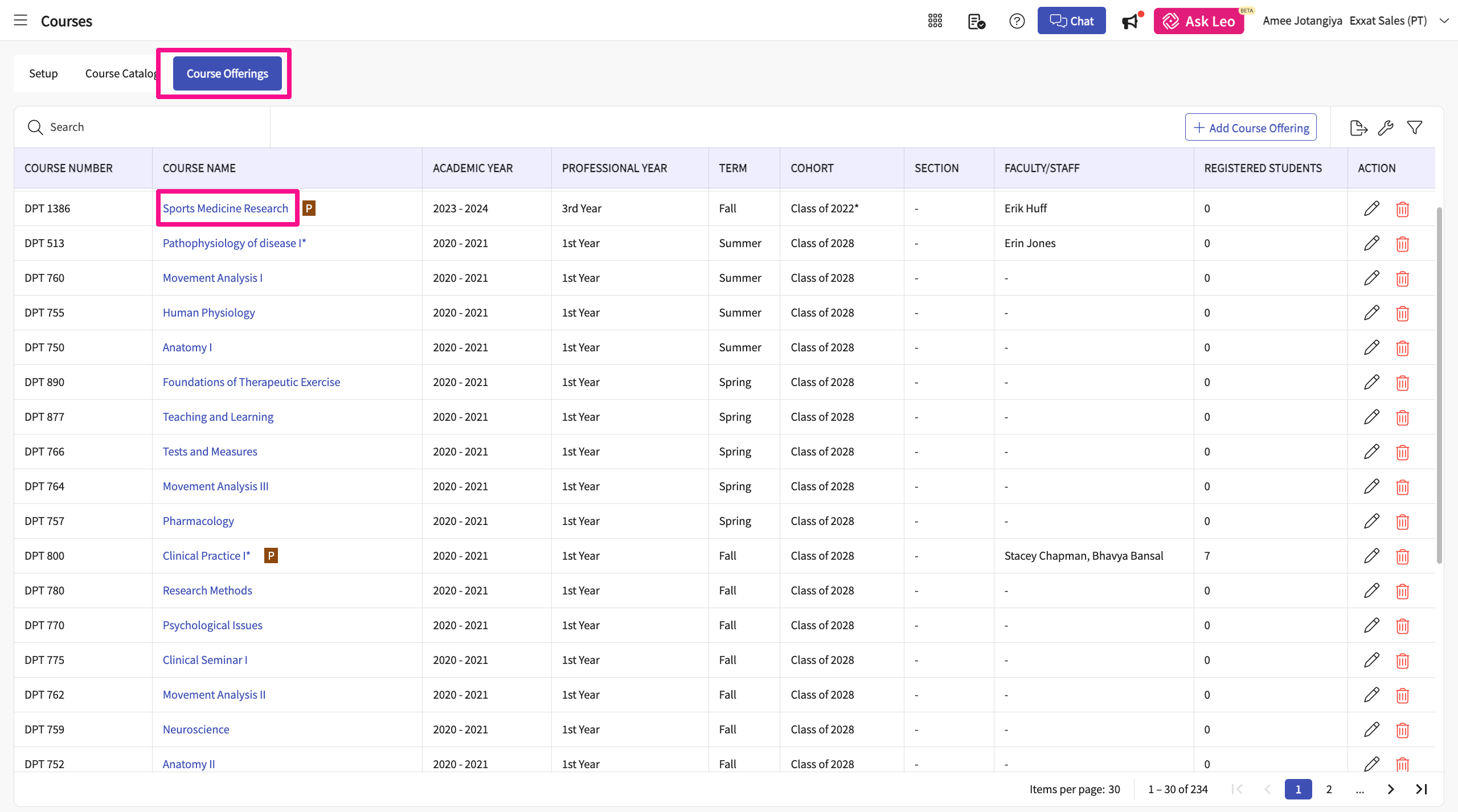 You’ll be redirected to the Course Offerings tab. Here you will see all course offerings previously added to your system.