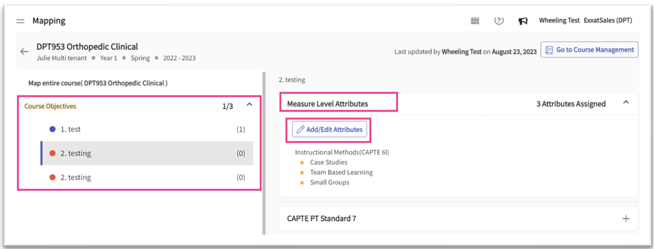 Please note that before you can assign attributes to any of the course measures, you’ll need to complete the following steps 1 and 2.