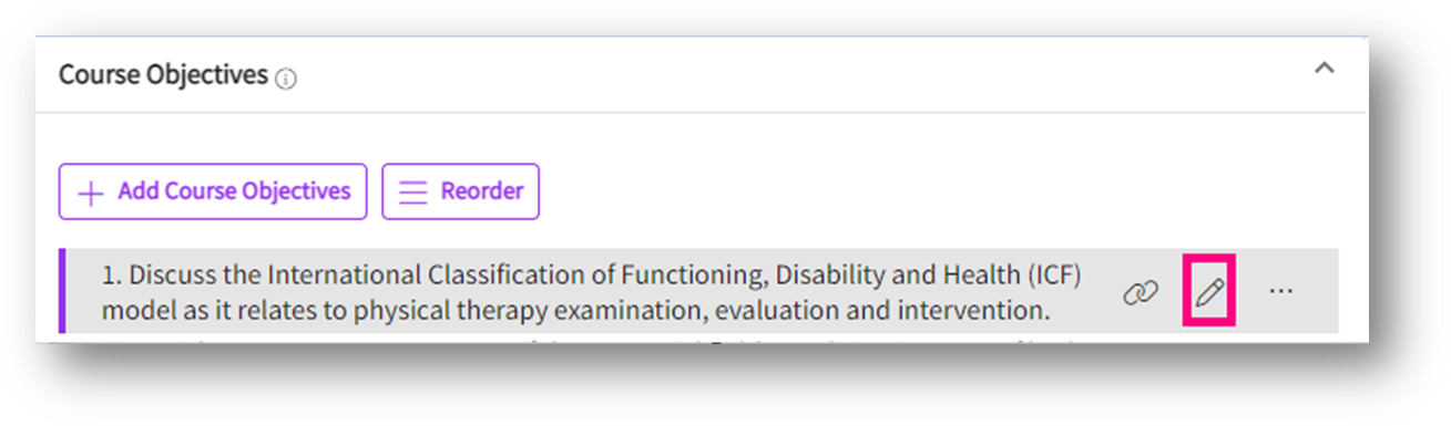 - Once you add your course measures, you will find the list building up in the system and you can continue to add more objectives to this by clicking on “Add course objectives”.