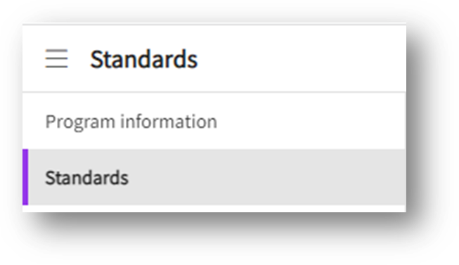- The following page will appear. On the left panel, click on Standards.