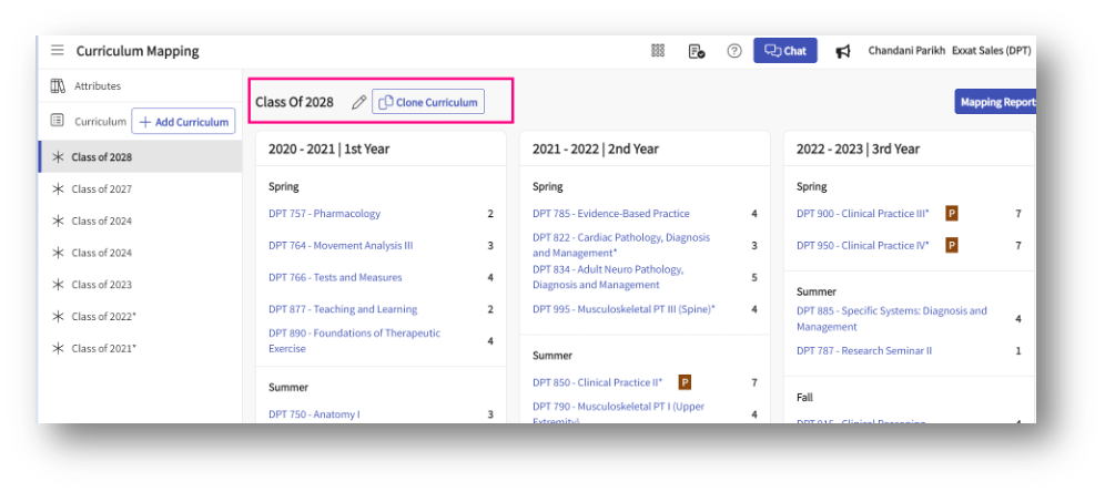- On this page, you will find list of all curriculum on left hand side and “Clone curriculum” option for each on right hand side