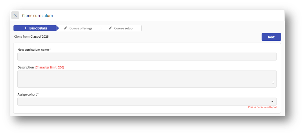 - Course Offerings: on this step you will select the courses you would like to include in your curriculum