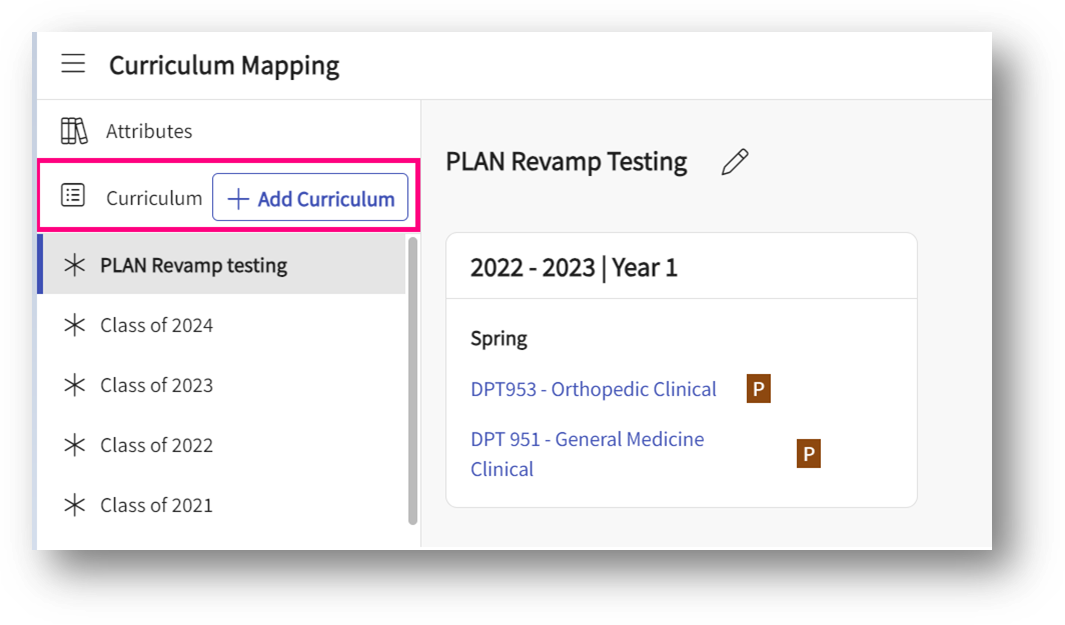- From the dashboard, select curriculum mapping