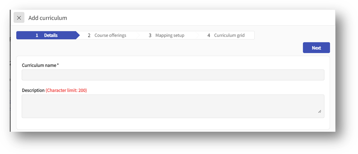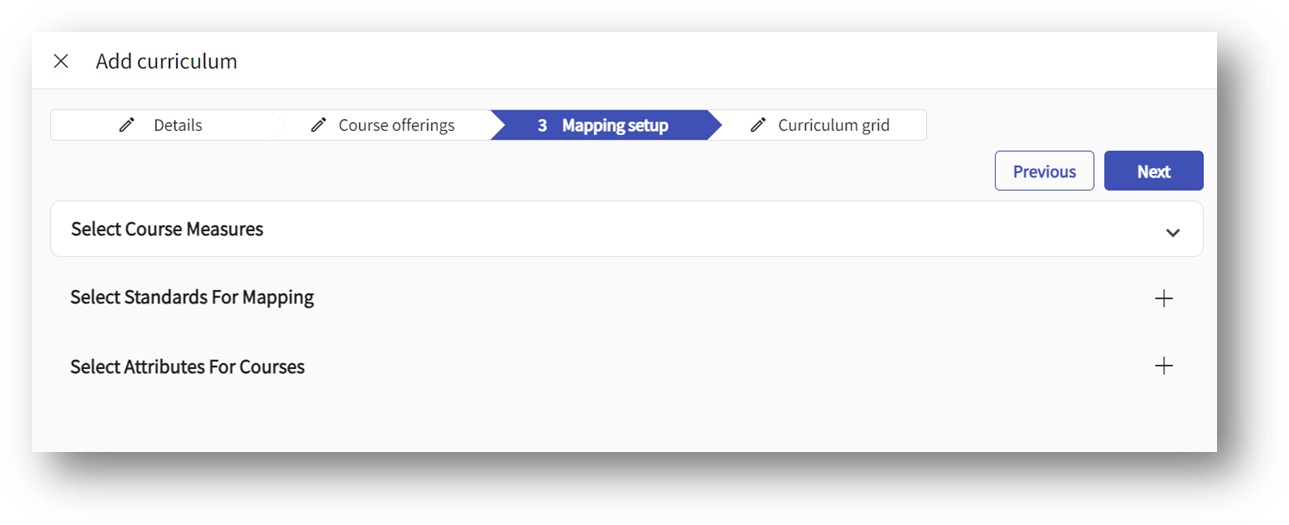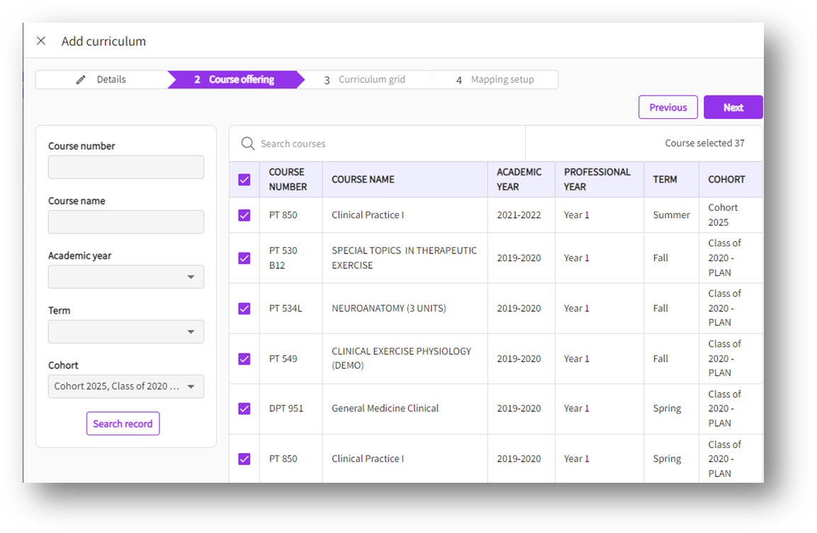- Course Offering: on this step you will select the courses you would like to include in your curriculum