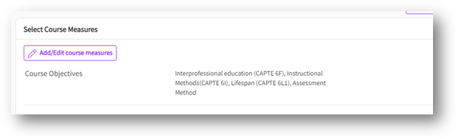 - If you have already added course measures, you can use the “Add/Edit Course Measures” link to make changes or activate new course measures.