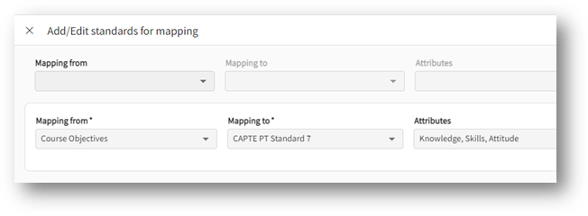- Mapping to: select standards you would like to map to. It will show you all standards activated for your cohort/curriculum grid.