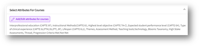 - If you have added attributes already and would like to make changes, click “Add/Edit Attributes for Courses”. Update the information and click Save.