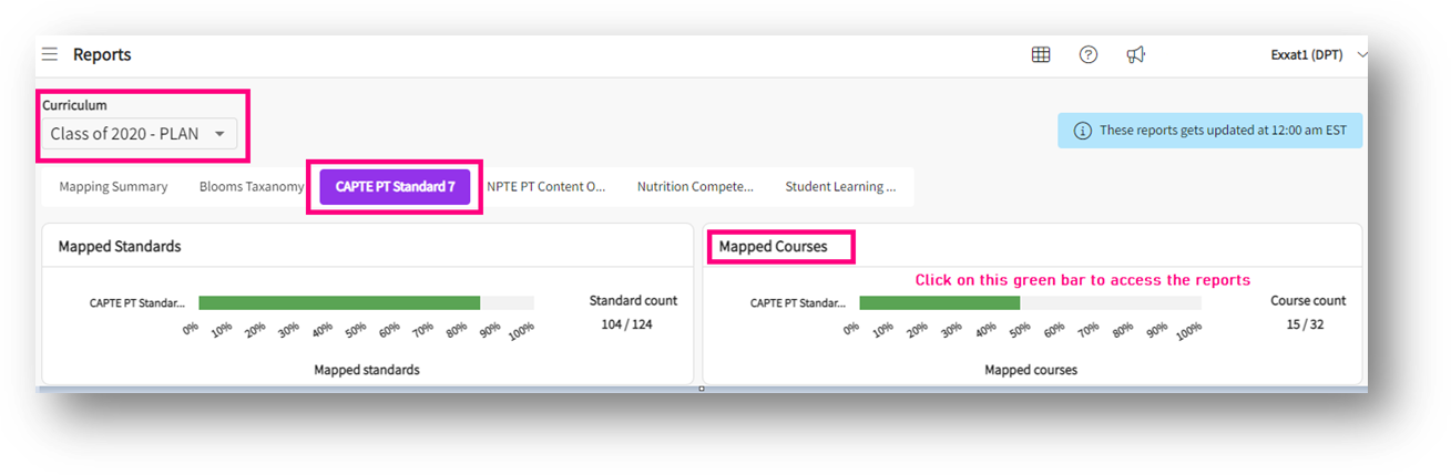 - Click on the "Curriculum mapping” from your dashboard and go to the “Mapping Reports” page appearing on top right corner.