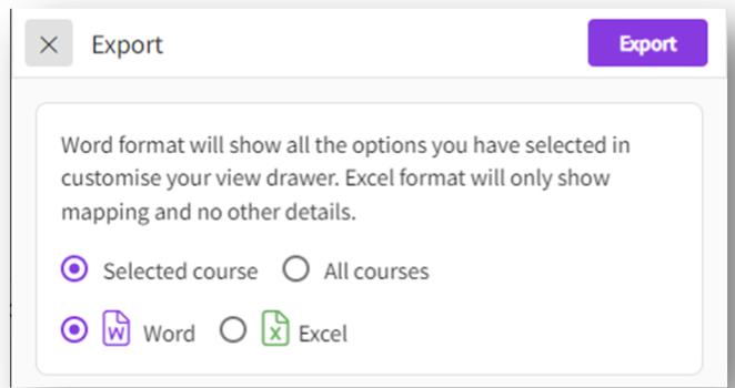 - On the top left-hand side, you have the drop-down menu to switch between “all courses” and “unmapped courses”. Depending on your choice here, it will generate the report.