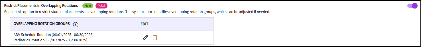 This ensures students are placed in only one rotation within each overlapping group. Program Administrators can review, edit, or delete overlap groups as needed.