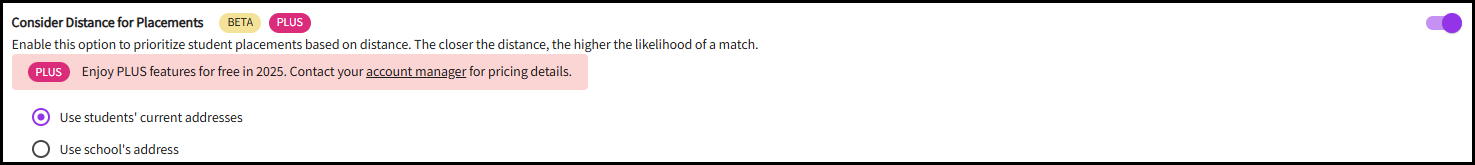 You can choose to use Students' current address or the school address to run the placement assist. -