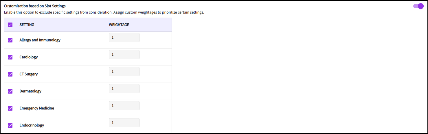 Enable this option to exclude specific slot types from consideration. Assign custom weightages to prioritize certain slot types, higher the number higher the weightage. Check the box to include the type of slot in the run. -