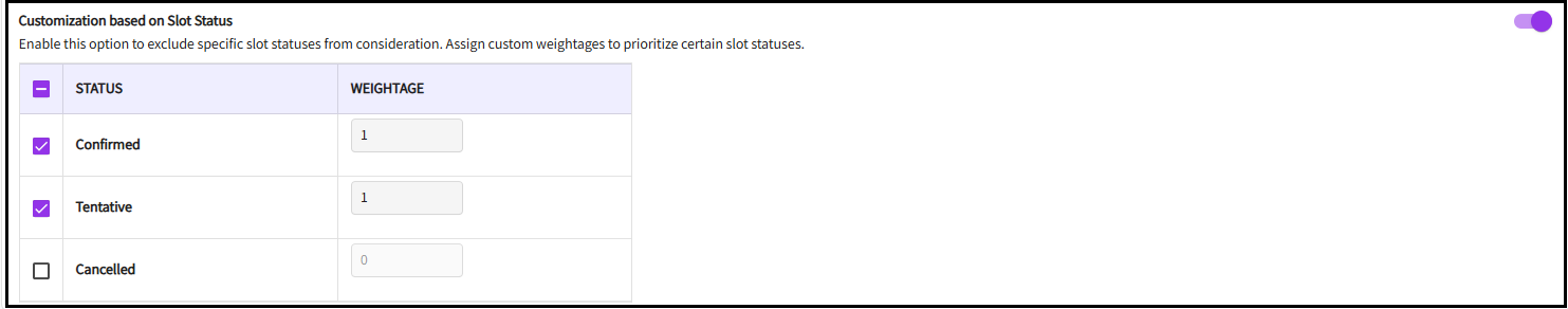 Enable this option to exclude specific slot statuses from consideration. Assign custom weights to prioritize certain slot statuses.