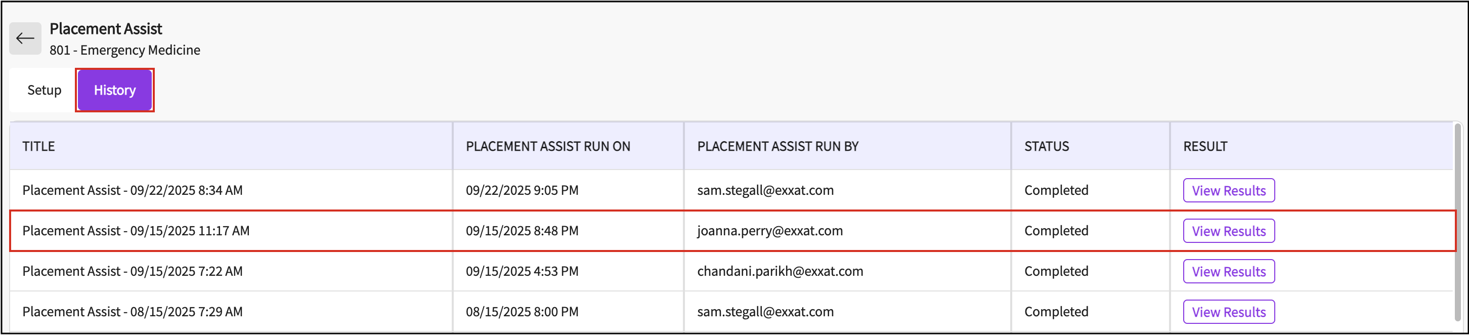 You’ll navigate to the History tab where the placement assist execution is listed.