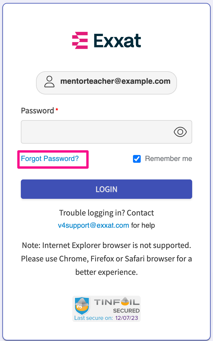 This is an invitation from "Your institution name" to join the Exxat’s Mentor Teacher Portal to manage all aspects of placments. With this application, you will be able to manage all the placement-related work from a single login.Please follow the below steps –1. Use the URL: instructor.exxat.com2. The username will be your email address3. Use the 'reset your password' option if you are accessing it for the first time.4. Please click on the 'Forgot Password' and add your email address.